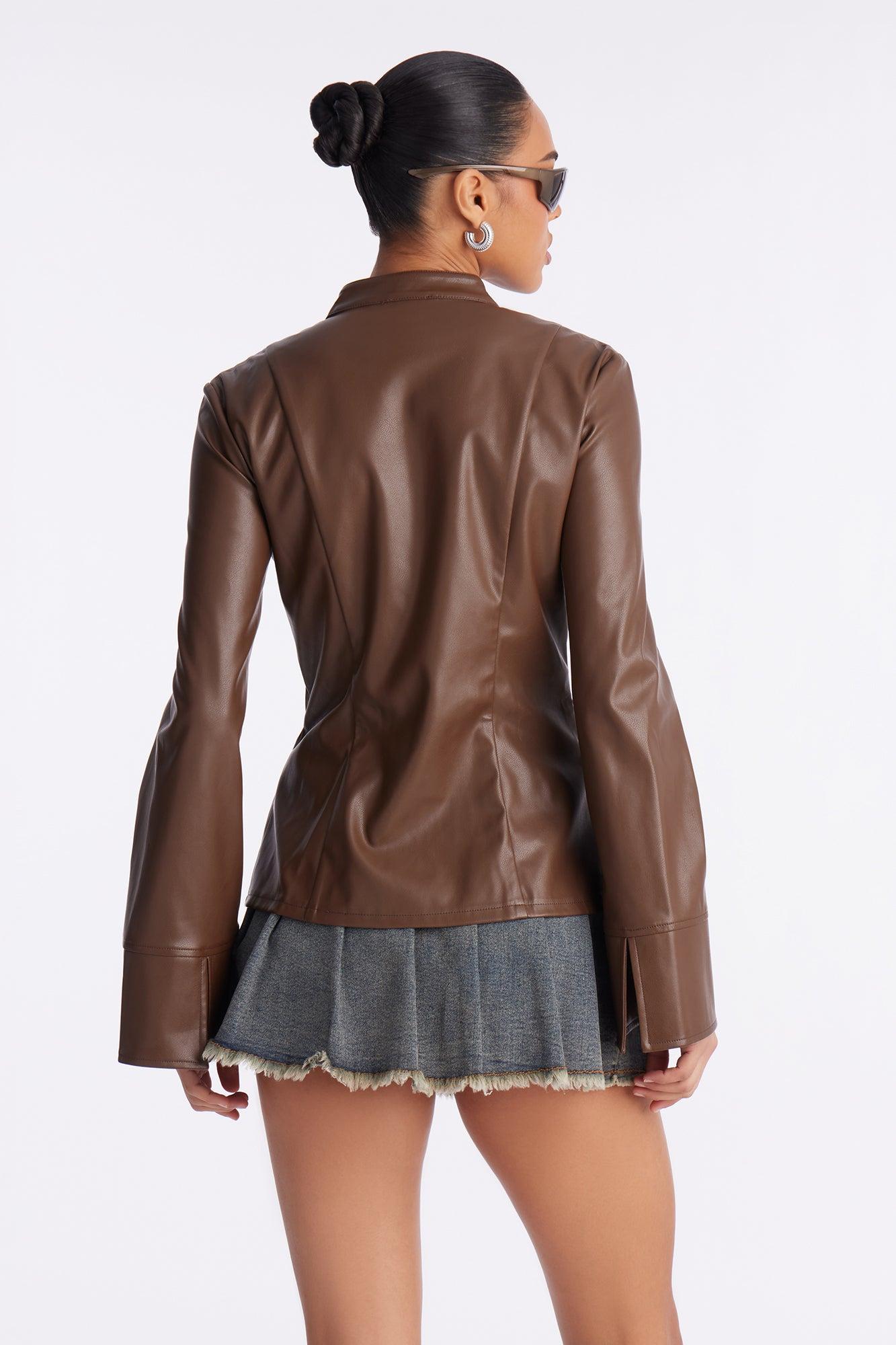 Kara Faux Leather Zip Up Shirt - Chocolate Female