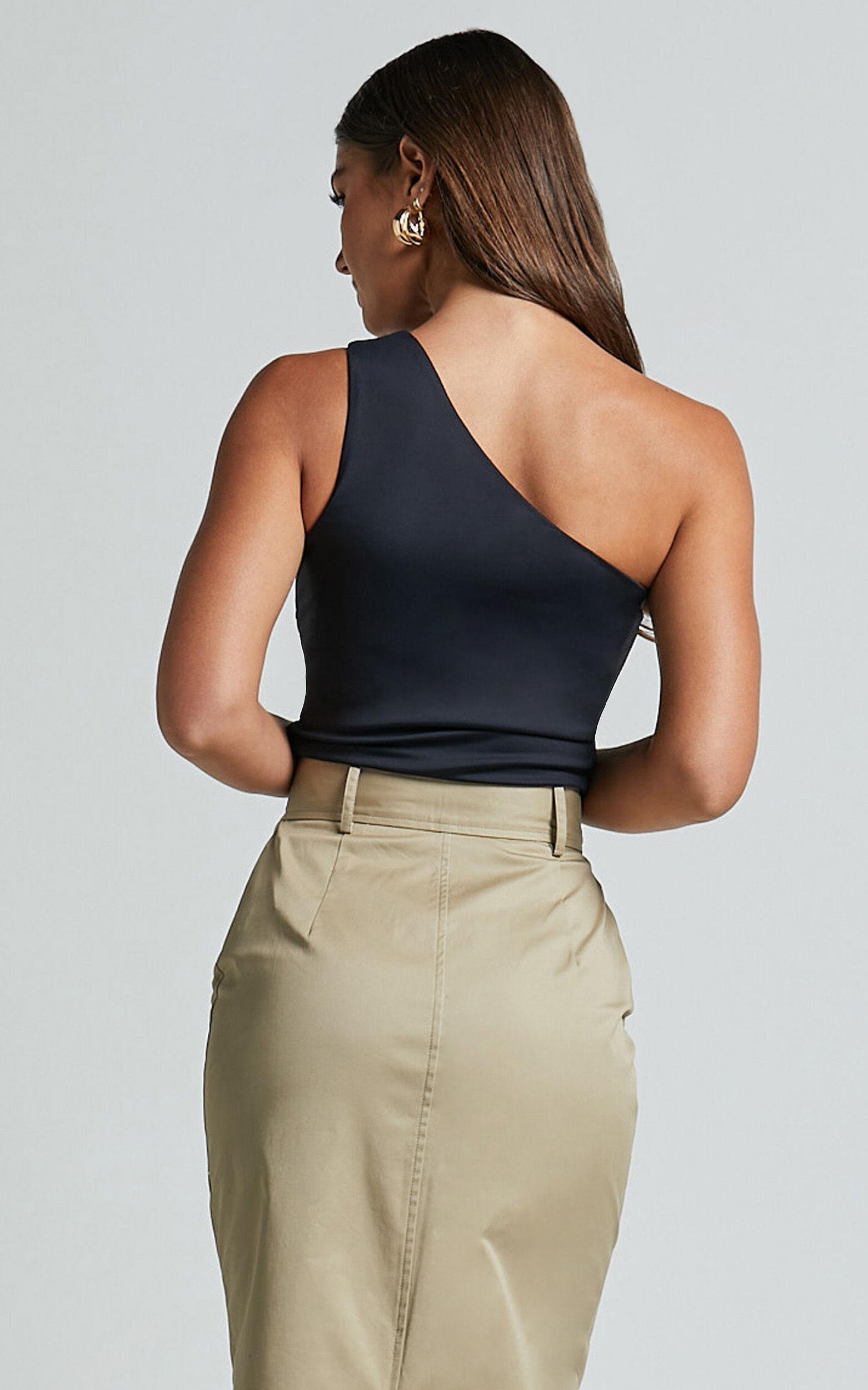 Get ready to turn heads in the Karel Top! This stunning one-shoulder sleeveless top is a modern twist on a classic basic. Made from high-quality spandex, this black top has just the right amount of stretch for a comfortable and flattering fit. Whether you're dressing it up with statement earrings and heels, or keeping it casual with jeans and sneakers, this versatile piece will quickly become a staple in your wardrobe. Stay stylish and confident with the Karel Top from Showpo!Product Details:One-shoulder designInner lining for comfortPull-on style for easy wear