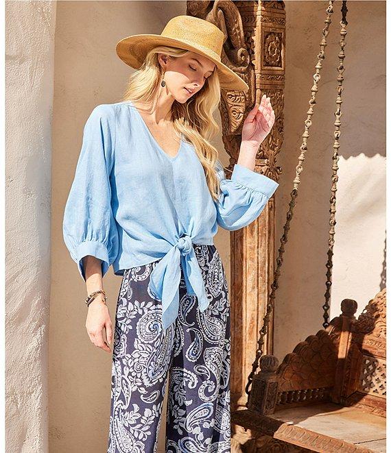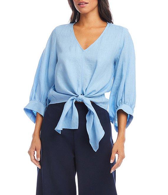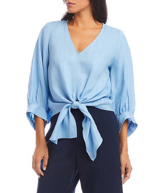 Karen Kane Blouson Sleeve Linen Tie-Front Top