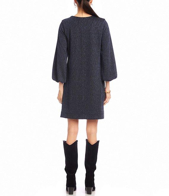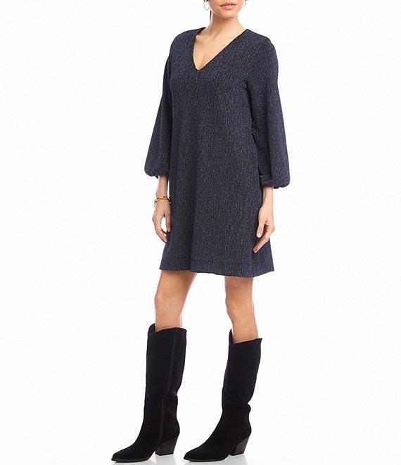 Karen Kane Blouson Sleeve Metallic Knit V-Neck Dress