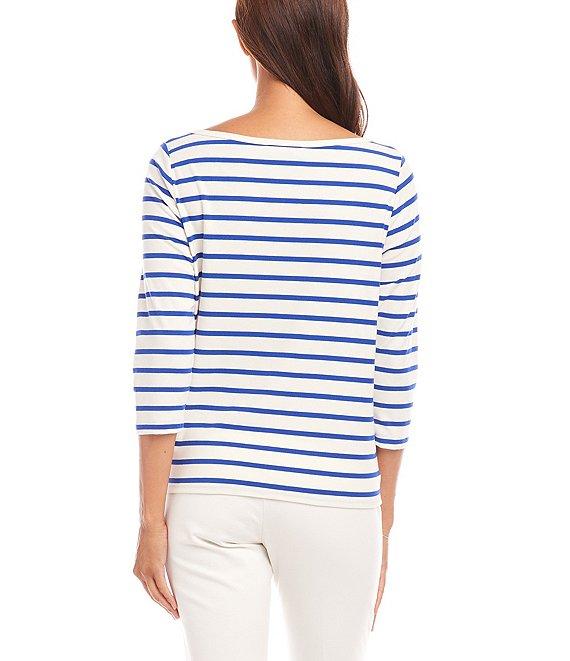Karen Kane Boat Neck 3/4 Sleeve Striped Stretch Knit Top
