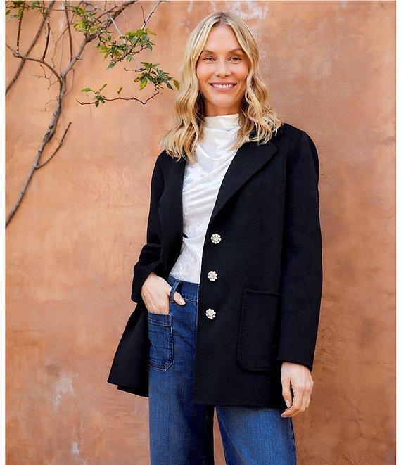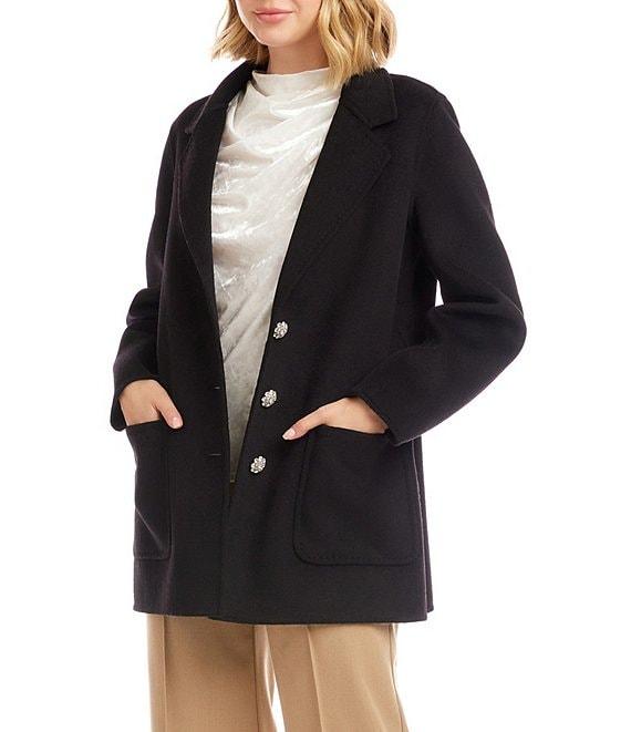 Karen Kane Brushed Wool Blend Oversized Notch Collar Statement Button Front Long Sleeve Blazer