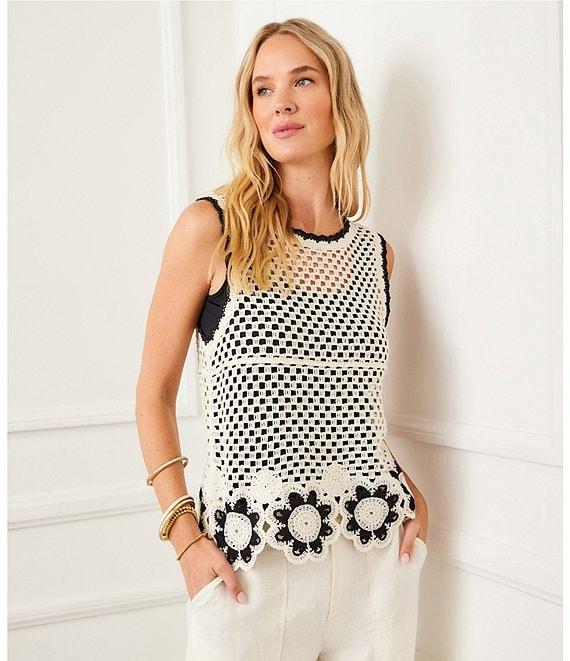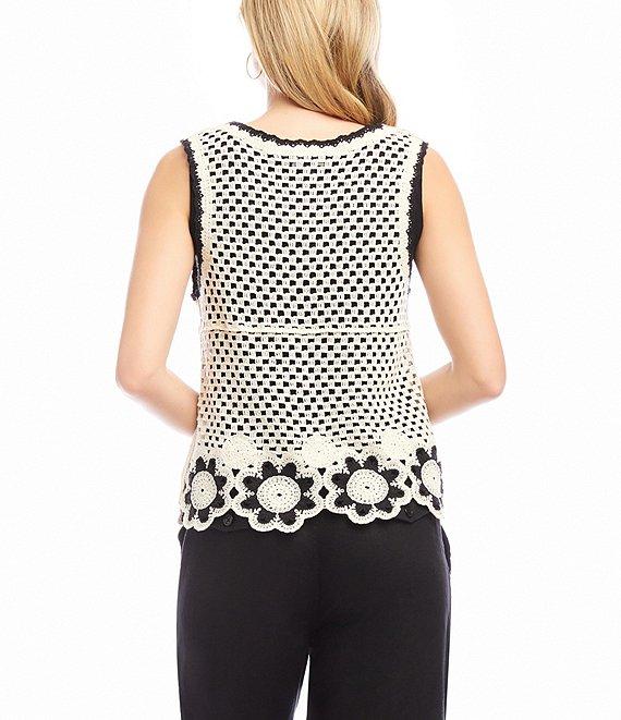 From Karen Kane, this sweater tank features:Crochet floral fabricationCrew necklineSleevelessScalloped hemPullover constructionApprox. 21.5" length CottonHand wash Imported.This stylish tank features delicate crochet flower details that bring a soft, feminine touch to a classic sweater silhouette. Perfect for layering or wearing on its own, this tank adds a playful yet refined vibe to your everyday look.