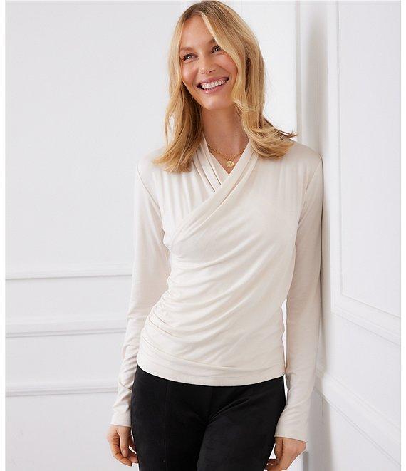 Karen Kane Crossover V-Neck Long Sleeve Side Shirred Faux Wrap Top