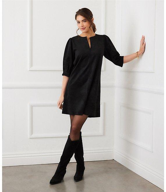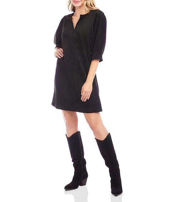 Karen Kane Faux Suede Split V-Neck Puff Sleeve Shift Dress