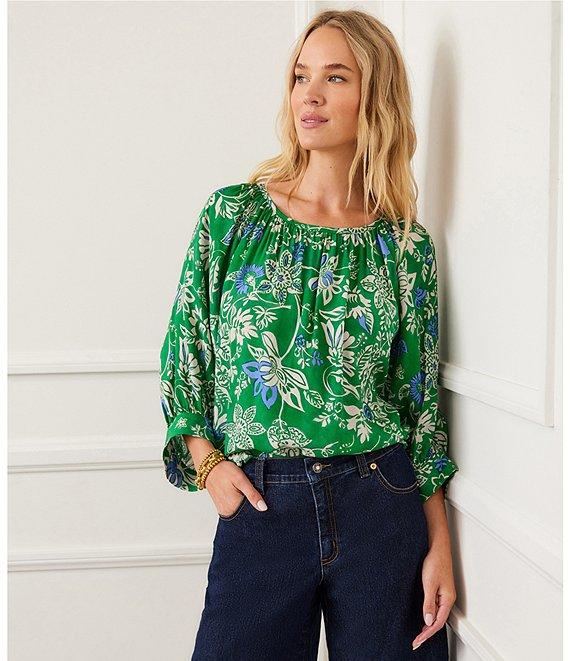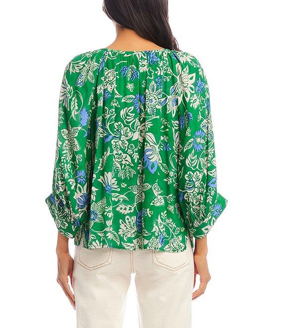 From Karen Kane, this top features: Crepe fabrication Floral print Scoop neckline 3/4 blouson sleeves Gathered cuffs Side slit hem Pull over construction Approve 22.75" length Viscose ecovero/viscose Handwash cold/flat dry or dry clean Imported.