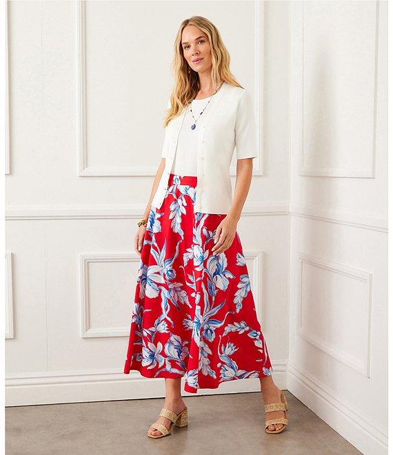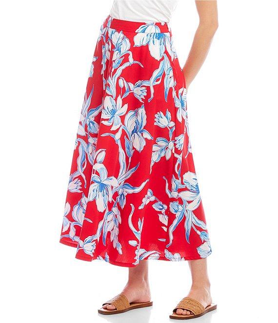 Karen Kane Floral Linen Midi Circle Skirt