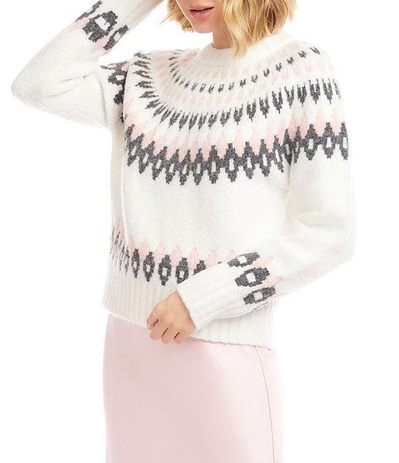Karen Kane Jacquard Knit Crew Neck Long Sleeve Sweater