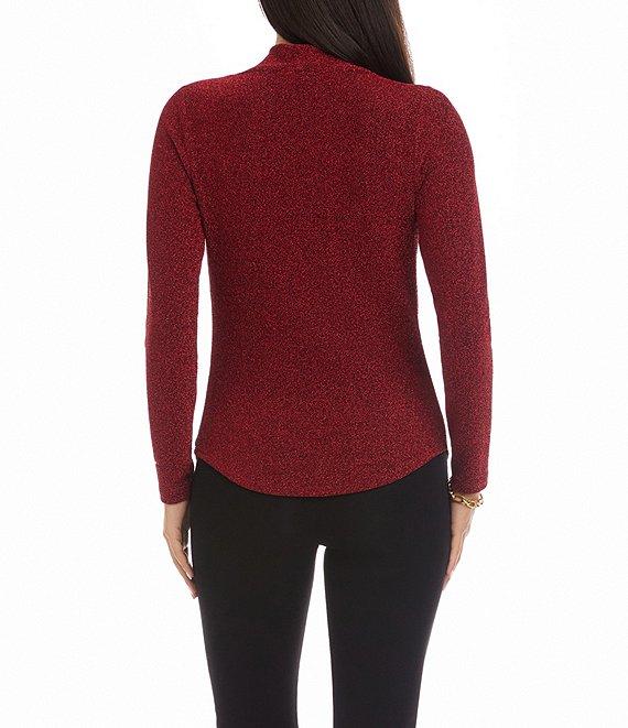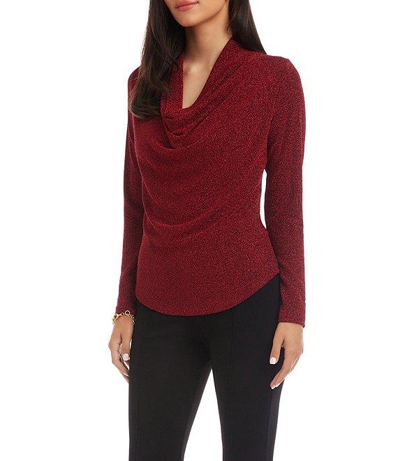 Karen Kane Long Sleeve Metallic Knit Drape Neck Top