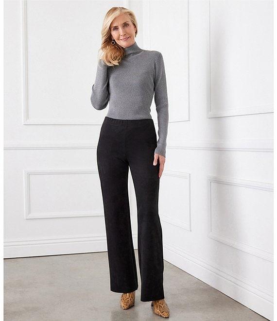 From Karen Kane, these pants feature: stretch ponte fabrication flat front silhouette elasticized waistband pintuck detailing pull-on construction 1.50 elastic knitted trim approx. 34.25" inseam hand wash Made in the USA. Discover ultimate style and comfort with our Luna Pants Made with a wide leg design and stretch Ponte material, these pants offer a flattering fit for any body type. The pintuck detail adds a touch of elegance, making them perfect for any occasion.