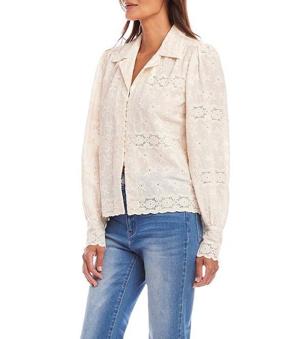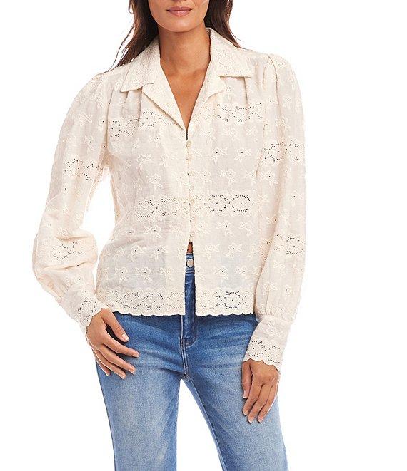 Karen Kane Notch Collar Long Sleeve Embroidered Eyelet Blouse