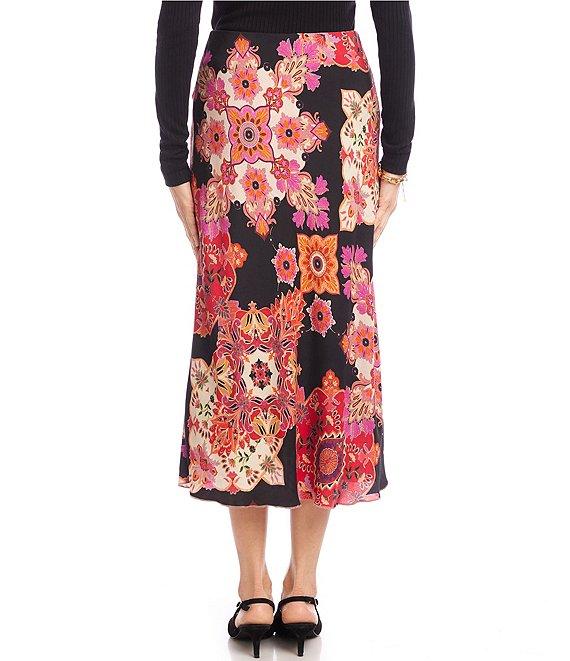 From Karen Kane Petite, this skirt features: Lightweight crepe fabrication A-line silhouette Elastic waistband Medallion floral print No pockets Lined Sits smoothly at the waist and falls to a soft, swingy hem Midi length Pull-on construction Approx. 30.75" length Viscose/ecovera; lining: polyester Hand wash or dry clean Imported.