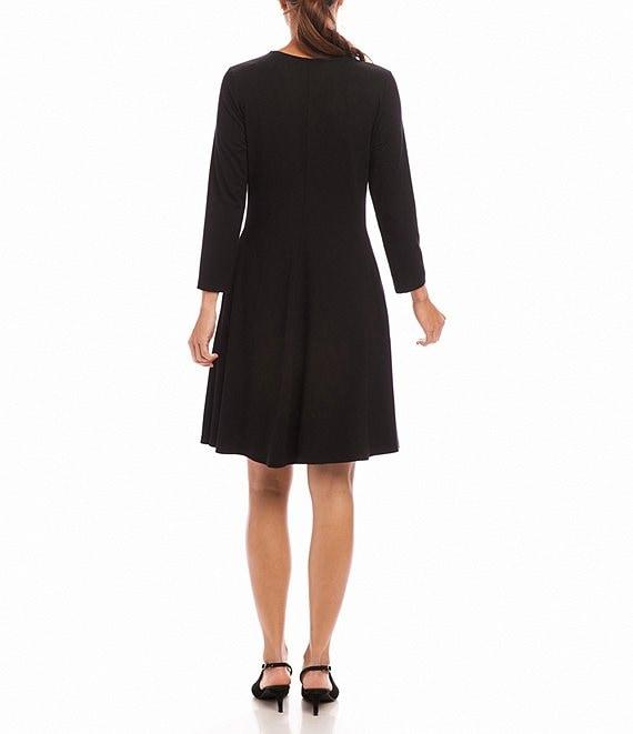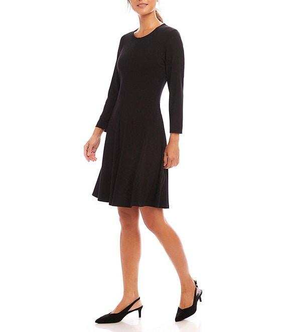 From Karen Kane Petite, this dress features: Heavy stretch rayon jersey fabrication Fit & flare silhouette Scoop neckline 3/4 sleeves Unlined Side pockets Knee length Straight hemline Pullover construction Approx. 36.625" length Rayon/spandex Machine wash/line dry Made in the USA. Karen Kane Petite Size 3/4 Sleeve Fit & Flare Dress Add this essential 3/4 Sleeve Fit & Flare Dress to your wardrobe. Made with heavy rayon spandex jersey, it is versatile and can be paired with sneakers for a casual day or with heels for a night out. Perfect for any occasion , Care: MACHINE WASH SEPARATELY COLD WATER, DELICATE CYCLE, NO BLEACH. HANG TO DRY., Rayon, Spandex, Made in the USA, Rise: N/A, Inseam: N/A, Length: 36 5/8 inches (size M), Trim: N/A, Hits At: Knee Length, Scoop Neck, 3/4 sleeve, Set-in sleeves, Pullover, Side pockets, Unlined