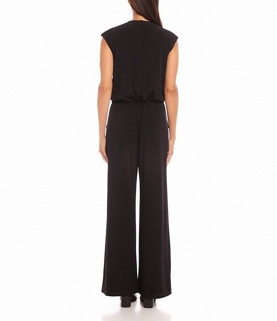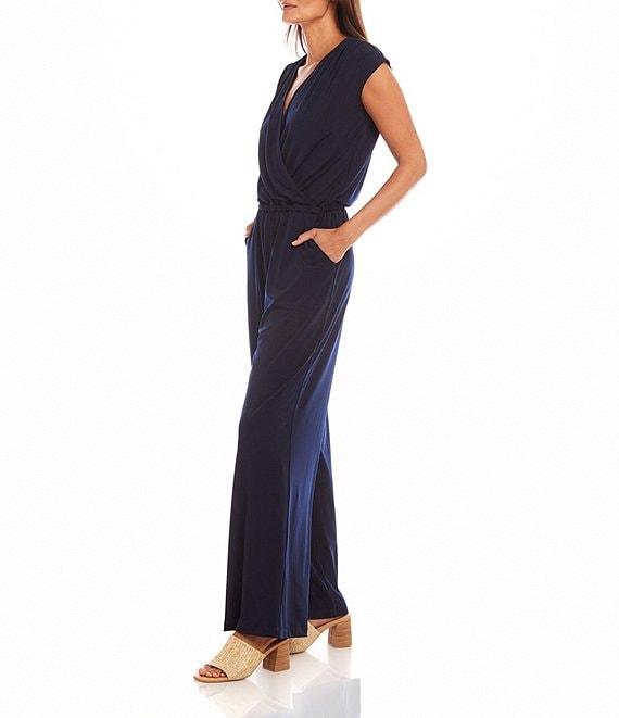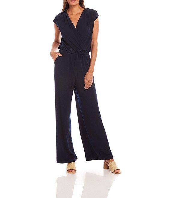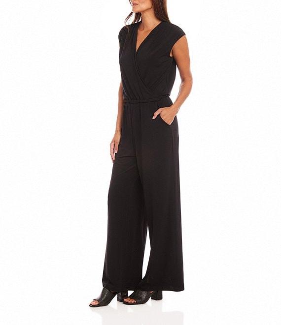 From Karen Kane Petite, this jumpsuit features: Jersey fabrication Crossover v-neckline Sleeveless Side pockets Elasticized waistband Unlined Pull-on construction Approx. 28" inseam, 19" length, 11.625" rise Polyester/spandex Machine wash/line dry Made in the USA of imported fabric Karen Kane Petite Size Sleeveless Travel Jersey Jumpsuit This sleeveless jumpsuit is crafted from a luxurious travel jersey material that is both wrinkle-resistant and stretchy. Featuring an elasticized waistband, this jumpsuit combines comfort and style, making it the perfect choice for any occasion. Stay effortlessly chic and comfortable with the travel-friendly design of this jumpsuit.,