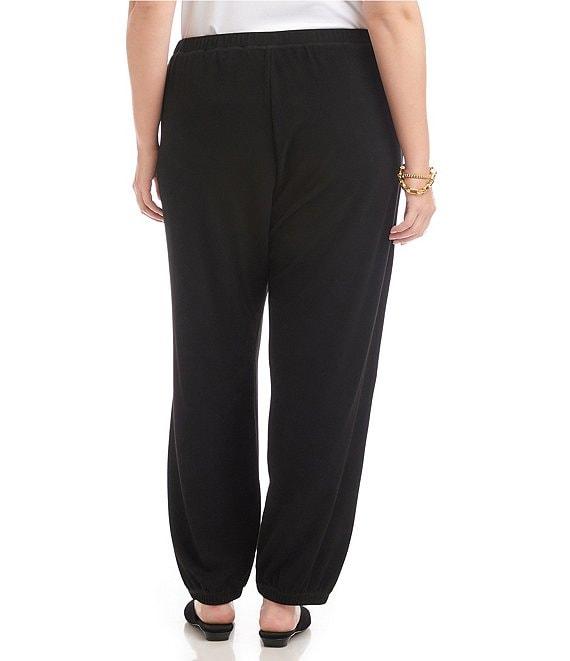 From Karen Kane Plus, these sweatpants feature: Brushed double knit fabrication Elasticized waistband Side front pockets Elasticized cuffs Pull-on construction Approx. 28.25" inseam, 13.25" rise Rayon/polyester/elastane Machine wash Imported. Designed for all-day comfort, these joggers are crafted from brushed stretch double knit fabric for a soft feel with flexible ease. Featuring an elastic waistband and elastic cuffs at the ankle, they offer a relaxed yet flattering fit. Finished with two side pockets, they re the perfect blend of laid-back style and everyday practicality.