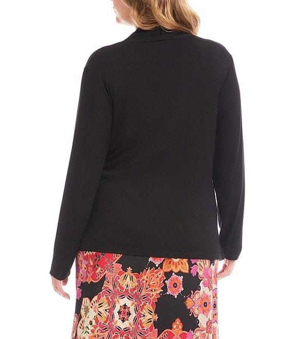 From Karen Kane Plus, this top features: Smooth stretchy fabrication Wrap silhouette Crossover v-neckline Long sleeves Side-shirred detail Straight hem Pullover construction Approx. 25" length Rayon/spandex Hand wash cold/lay flat to dry Made in the USA.