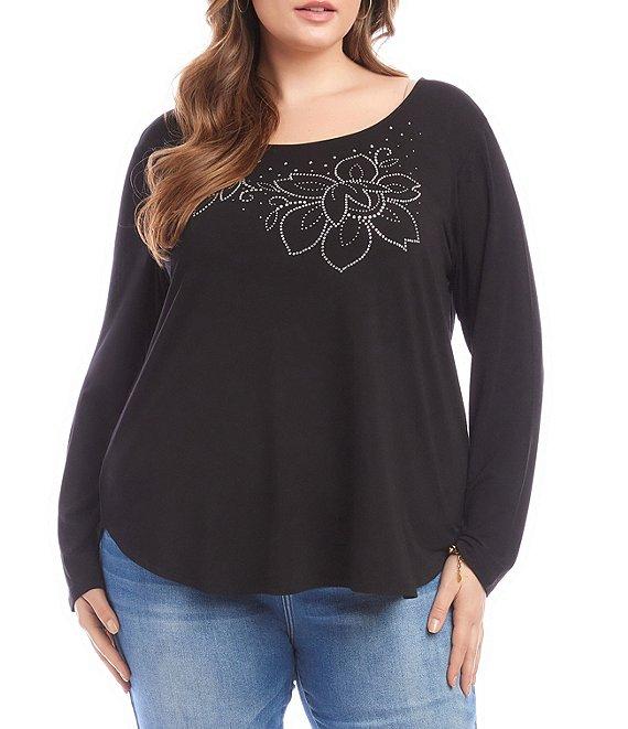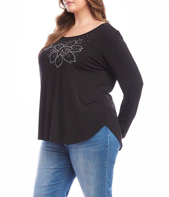 Karen Kane Plus Size Embellished Scoop Neck Long Sleeve Top