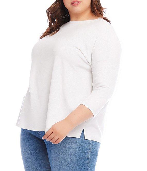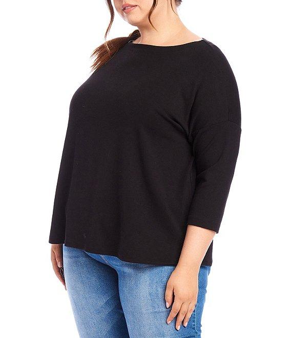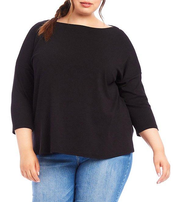 Karen Kane Plus Size Organic Cotton Blend Boat Neck 3/4 Sleeve Top