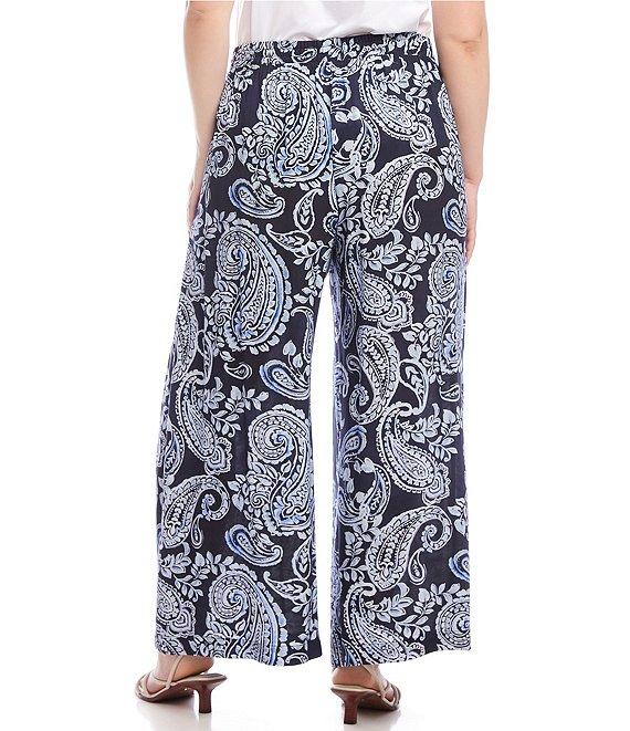 Karen Kane Plus Size Paisley Wide Leg Pull-On Pants