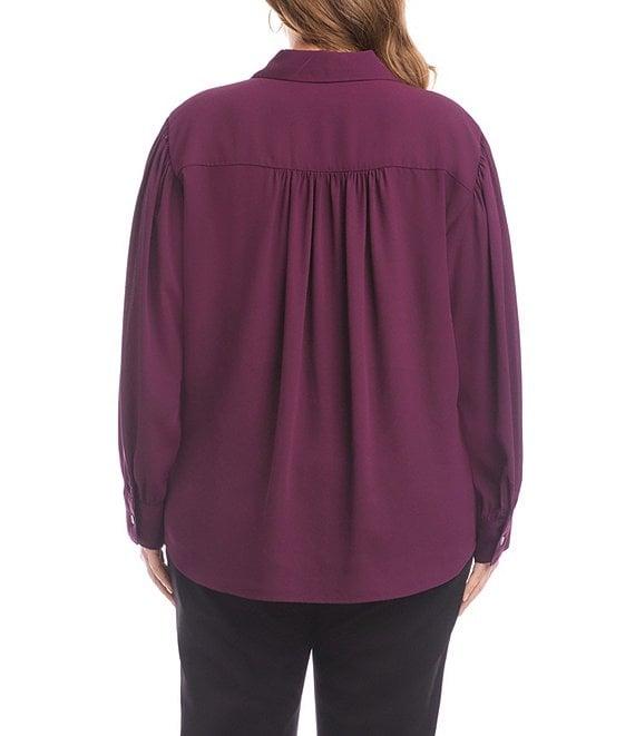 Karen Kane Plus Size Silky Crepe Point Collar Long Sleeve Button Front Blouse