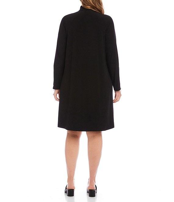 From Karen Kane Plus, this dress features: Travel jersey knit fabrication Collared Long set in sleeves with zipper at cuffs Half zipper front closure Two functional side pockets No lining Straight hemline Approx. 38.75" length Polyester/spandex Hand wash Made in USA of Imported Fabric. This zip-up travel dress is made from ultra-comfortable travel jersey fabric and features a polished collar, long sleeves, and a functional half-zip neckline. Designed with convenient side pockets and zipper detailing at the cuffs, it's the perfect piece for on-the-go days or casual getaways.,