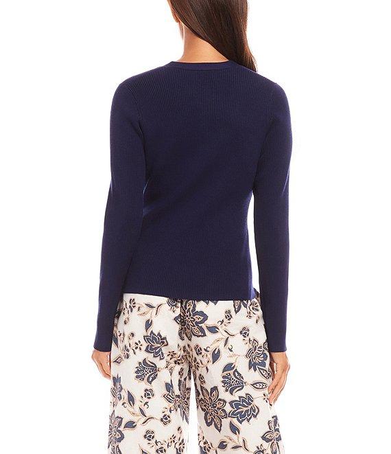 Karen Kane Ribbed V-Neck Long Sleeve Cardigan Sweater