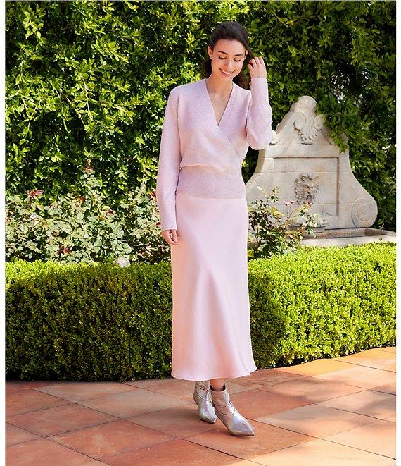 From Karen Kane, this skirt features: Satin fabrication Bias cut Elastic waistband Lined Pull-on construction Approx. 35.75" length Polyester/recycled polyester Dry clean Made in the USA. Of Imported fabric