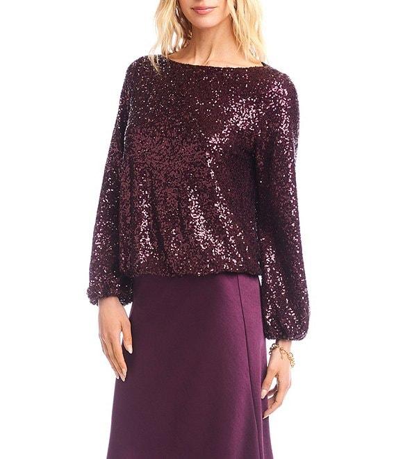 Karen Kane Sequin Mesh Boat Neck Blouson Sleeve Blouse
