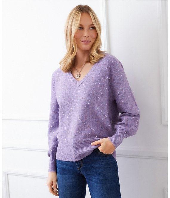 Karen Kane Sequin V-Neck Long Sleeve Sweater