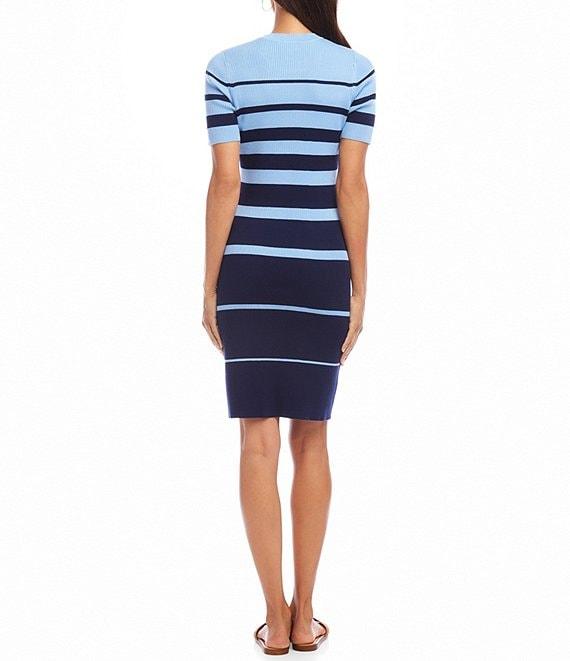 Karen Kane Stripe Ribbed Crew Neck Short Sleeve Sheath Dress