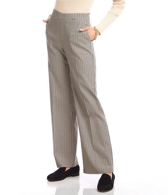 From Karen Kane, this pant features: Subtle check pattern Straight leg silhouette Clean front waistband/elastic in the back 2 functional side seam pockets Invisible side zip closure Approx. 31.50" inseam; 11.875" front rise Rayon/nylon/spandex Machine wash cool/hang to dry Made in the USA of imported fabric.