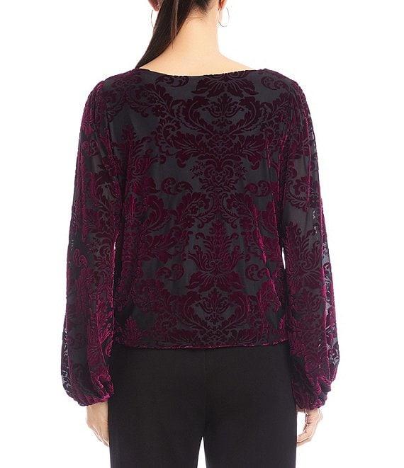 Karen Kane Velvet Burnout Boatneck Blouson Sleeve Blouse