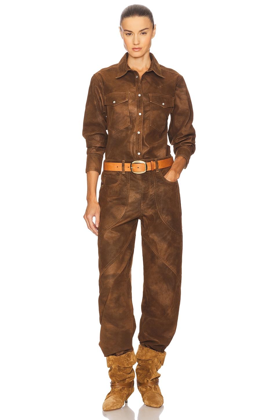 63% polyurethane, 28% viscose, 5% other fibers, 4% polyamide. Machine wash. Front button snap closure. Breast flap pockets with button snap closures. Buttoned cuffs. Faux suede fabric. Item not sold as a set. Made in Tunisia. Revolve Style No. ISAR-WO146. Manufacturer Style No. CH0240FA-C3B01E.