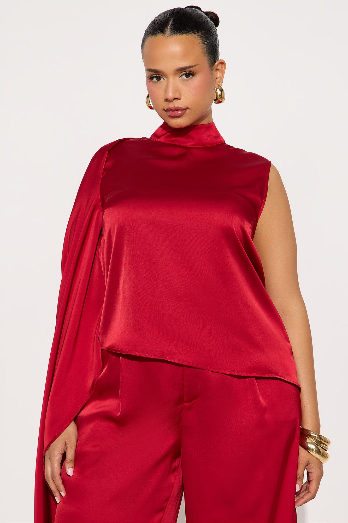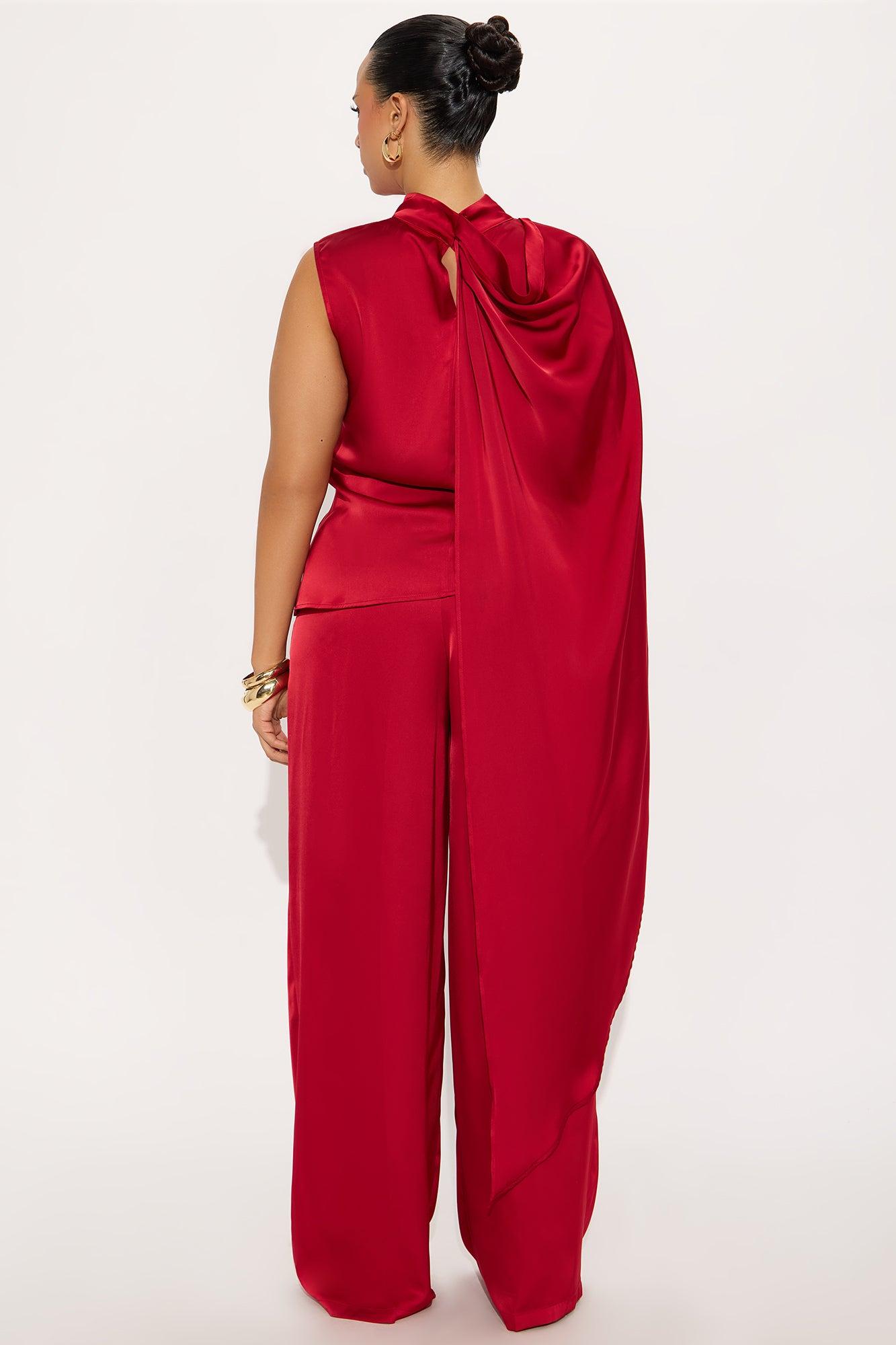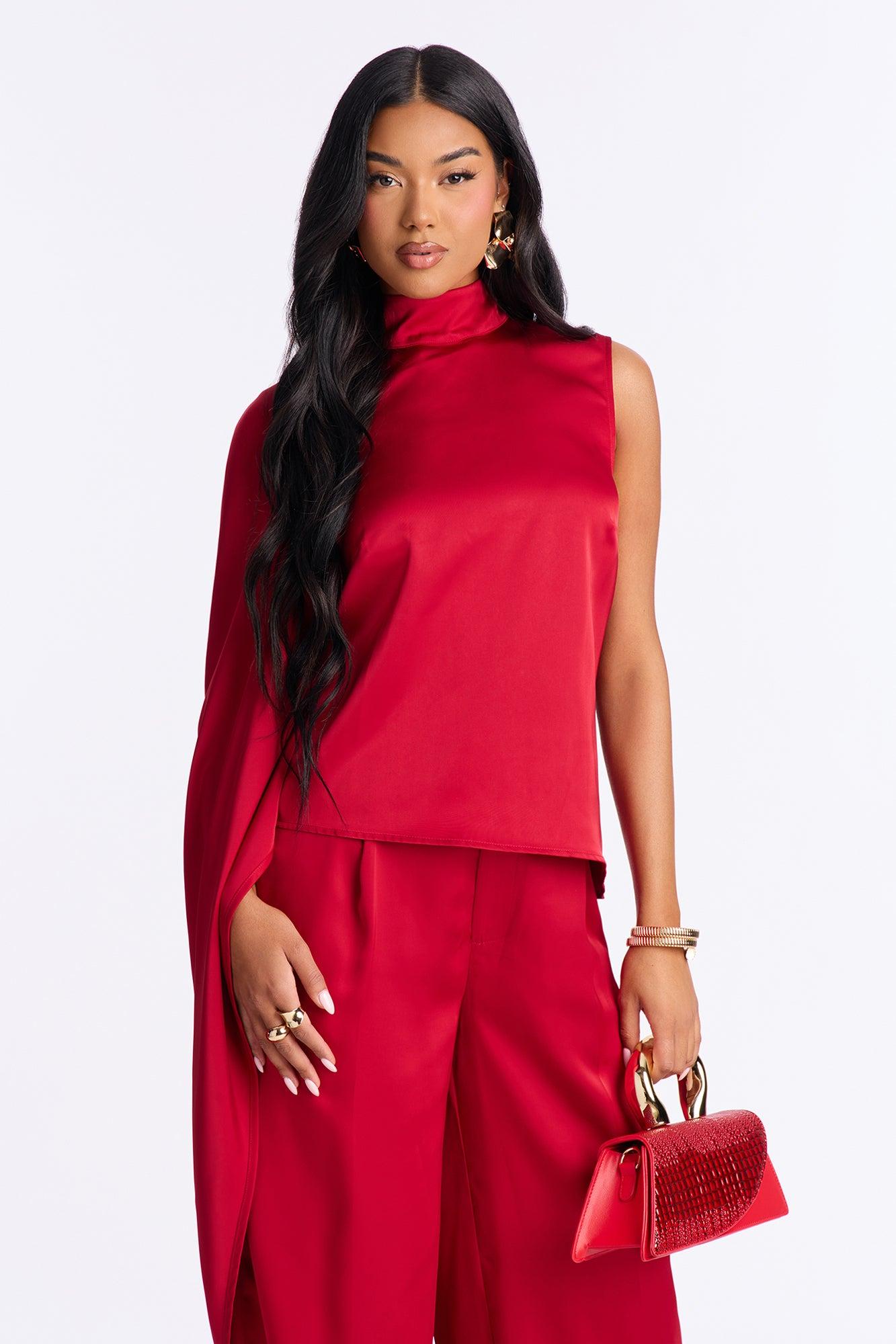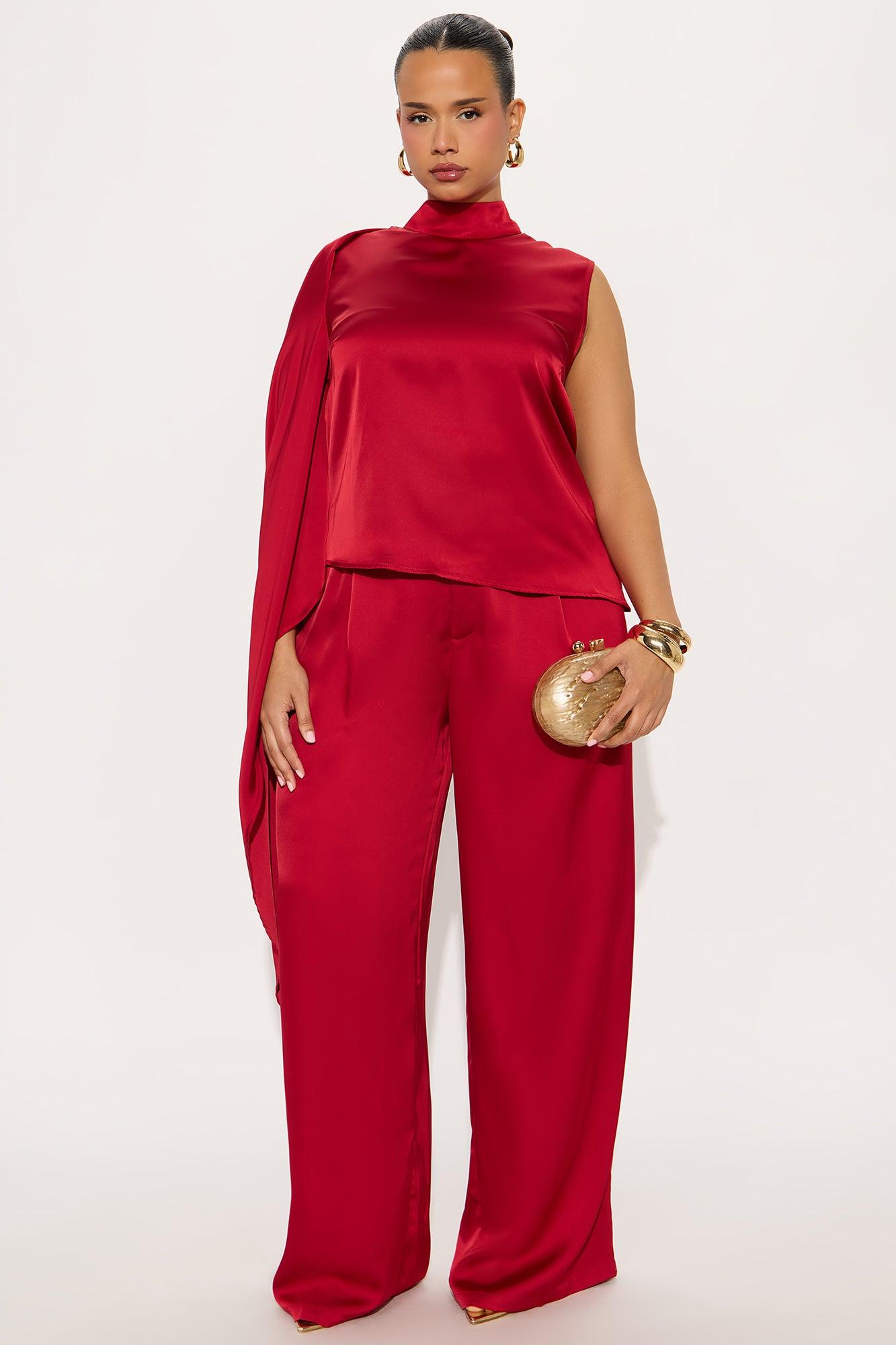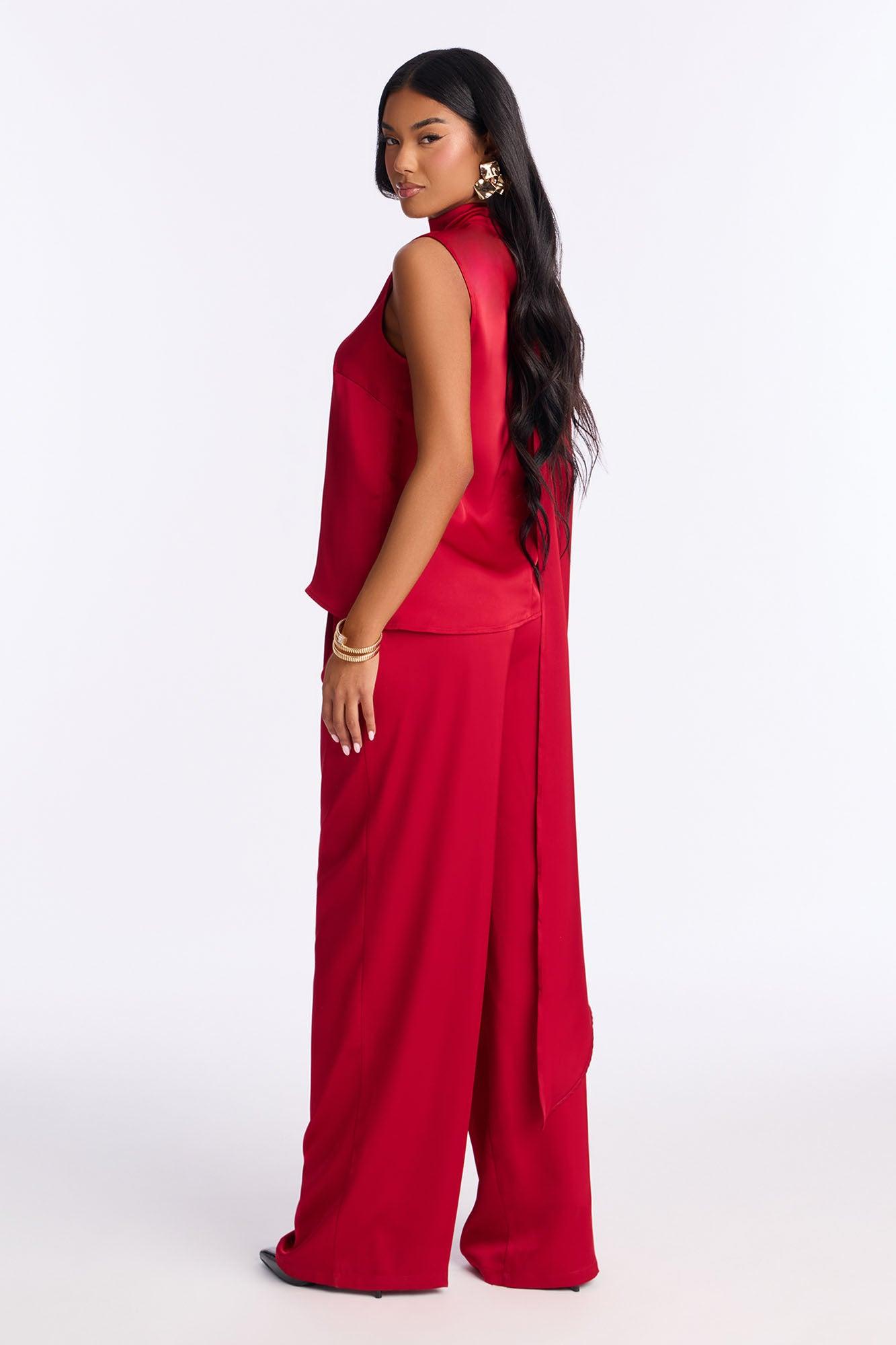 Karina Mock Neck Asymmetrical Wide Leg Pant Set - Red Female