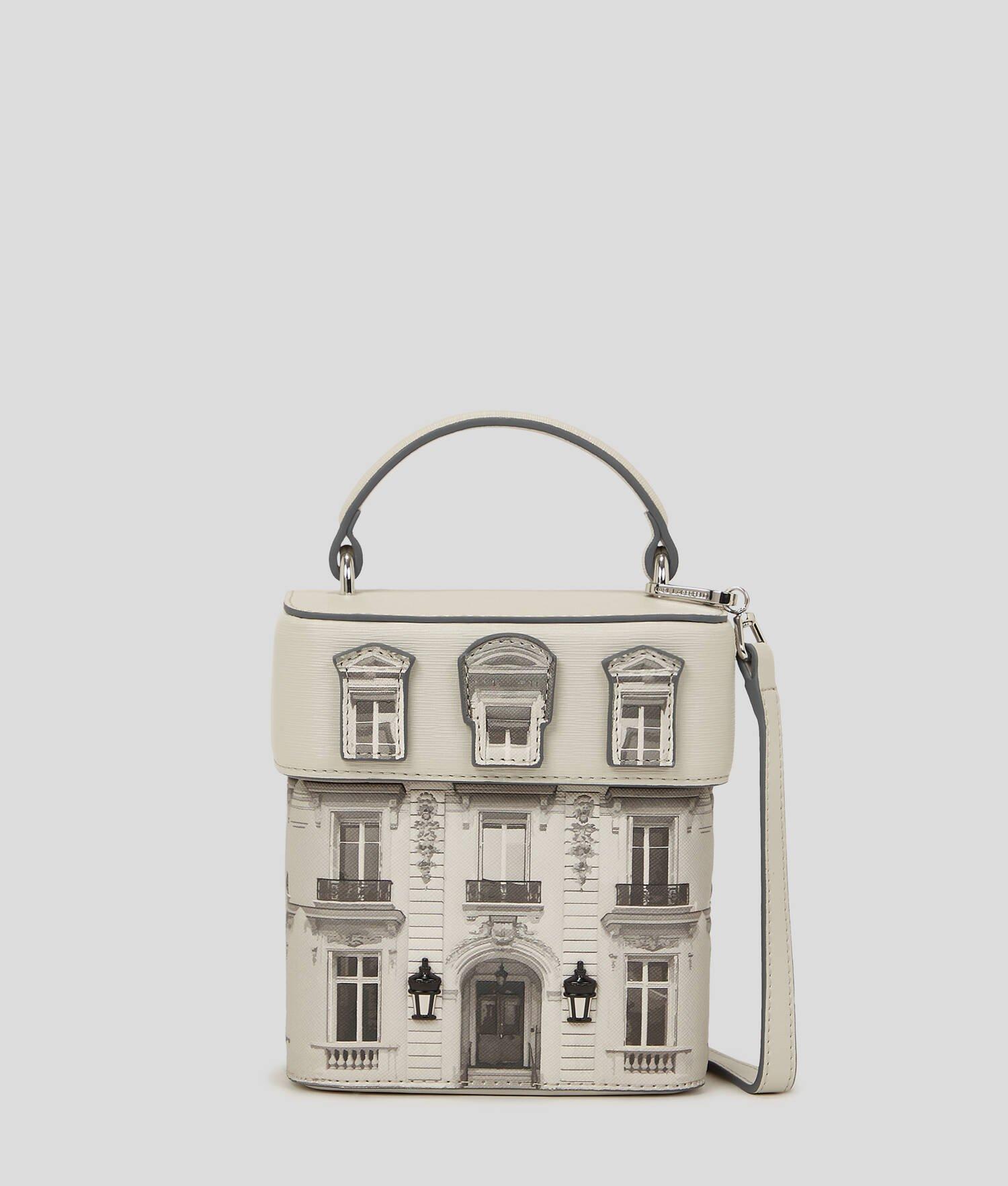 A tribute to the iconic Parisian building dear to Karl Lagerfeld, this collectible Rue St-Guillaume crossbody bag blends functionality with fashion history. The Maison silhouette, adorned with intricate appliqué detailing, offers a structured top handle and a versatile detachable strap, ideal for transitioning from daytime exploration to evening elegance.