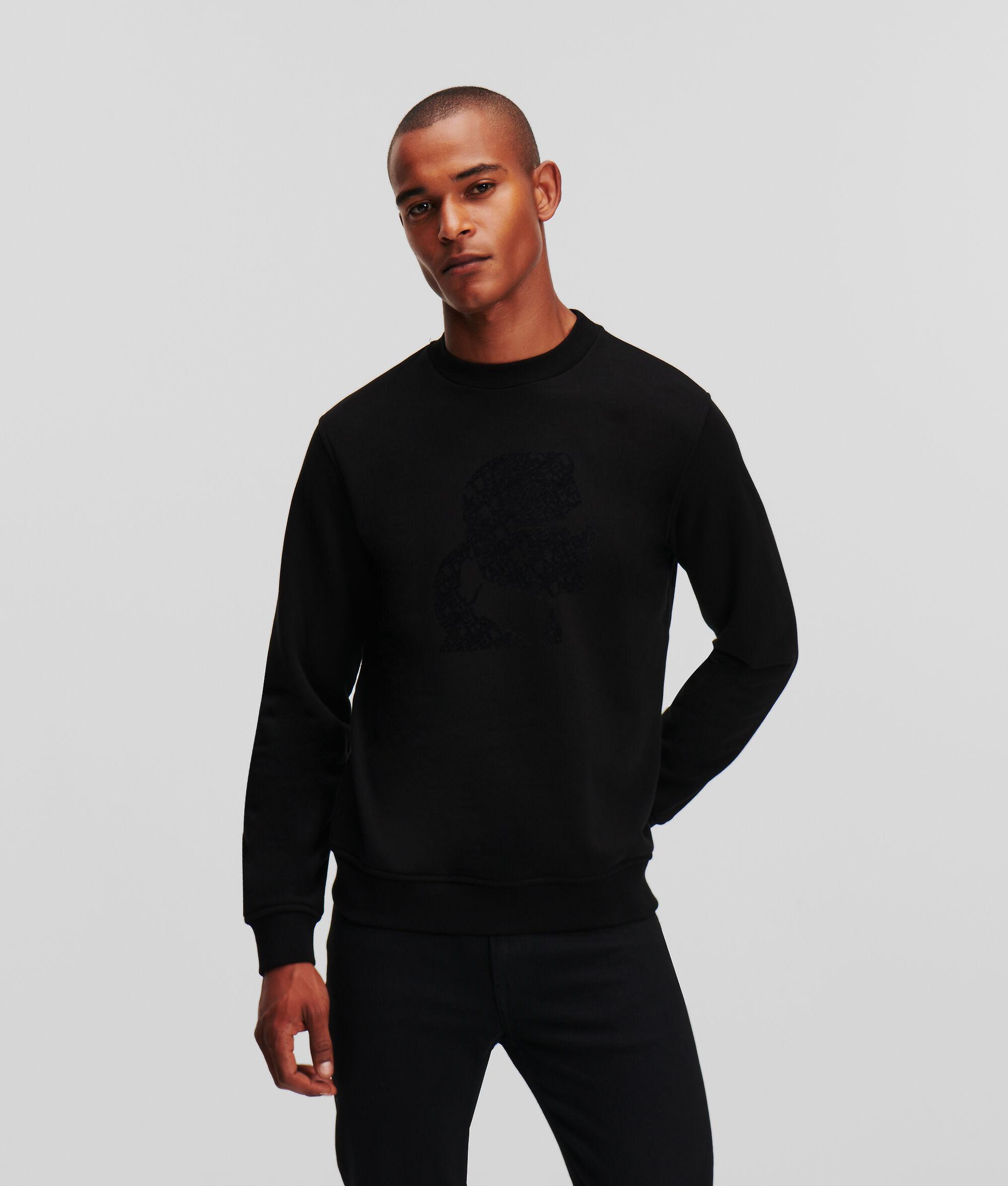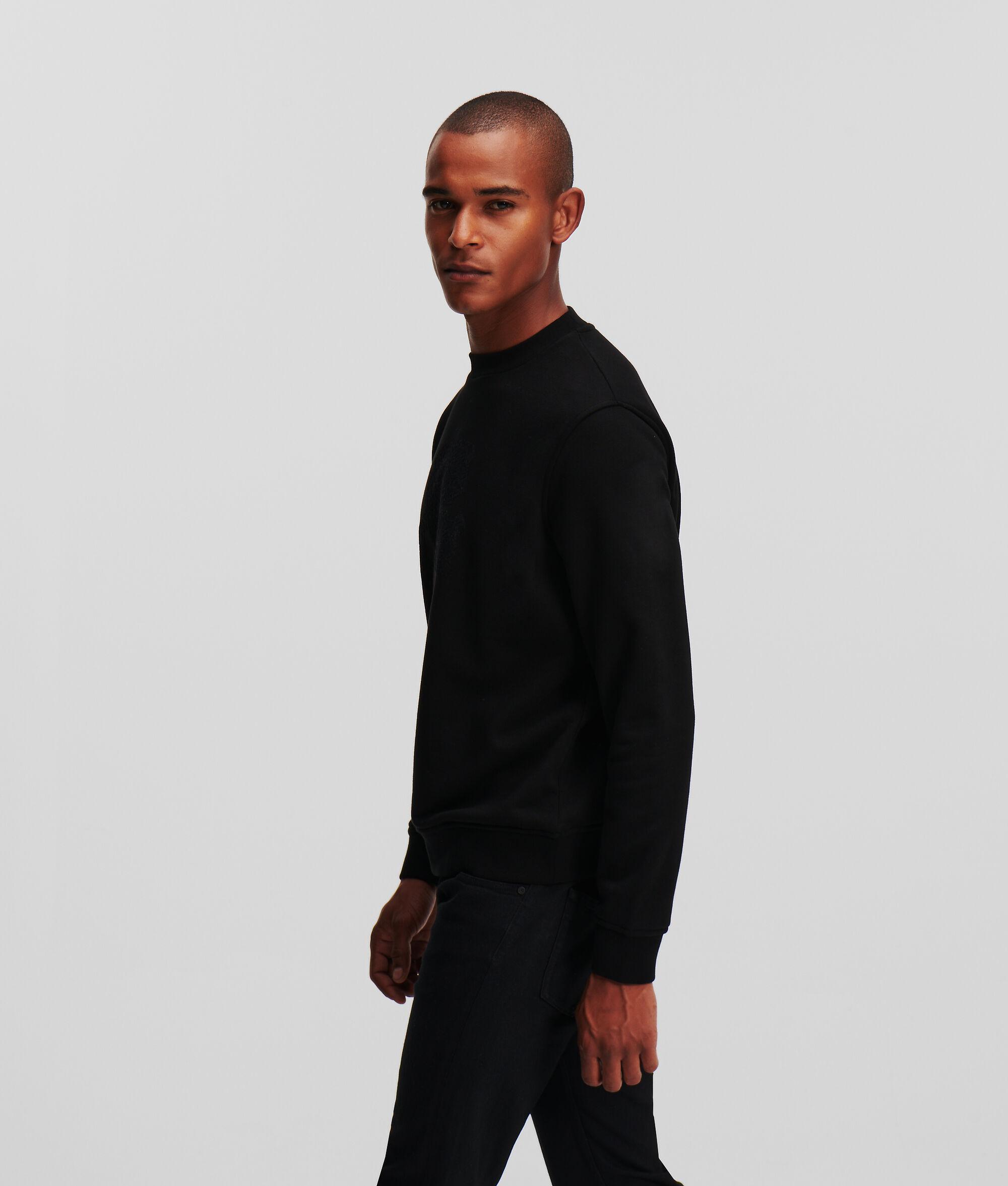 A casual sweatshirt with a rich hand feel features a tonal KARL Kameo logo design on the chest.