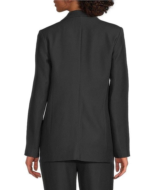 From KARL LAGERFELD PARIS, this blazer features: Notch collar Long sleeves Printed Lined Straight hemline Button front closure Approx. 28" length Polyester/spandex Dry clean only Imported.