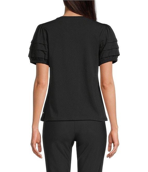 From KARL LAGERFELD PARIS, this tee features: Knit jersey fabrication Crew neckline Short puff sleeves Left side floral detail Straight hemline Pullover construction Approx. 23.5" length Cotton/modal/elastane/spandex Hand wash Imported.