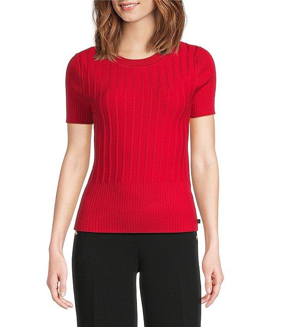 KARL LAGERFELD PARIS Knit Round Neck Short Sleeve Top