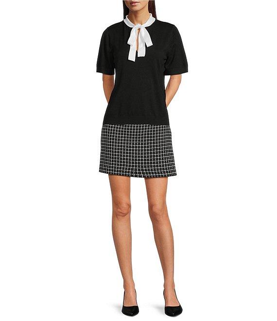 KARL LAGERFELD PARIS Knit V-Neck Bow Short Sleeve Top