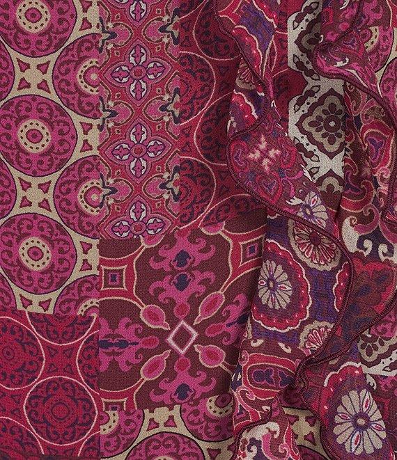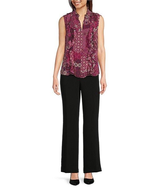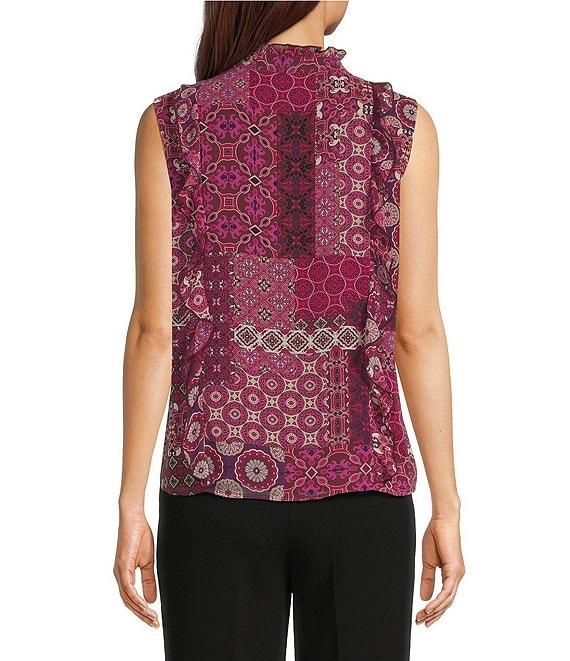 KARL LAGERFELD PARIS Printed Woven V-Neck Sleeveless Ruffle Blouse