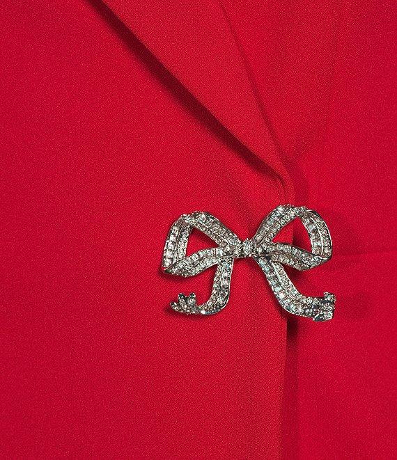 From KARL LAGERFELD PARIS, this dress features: Scuba crepe fabrication Collar neckline Long sleeves Wrap jacket dress Rhinestone bow embellishment Lined Snap front closure Approx. 35.5" in length Polyester/spandex Dry clean only Imported.