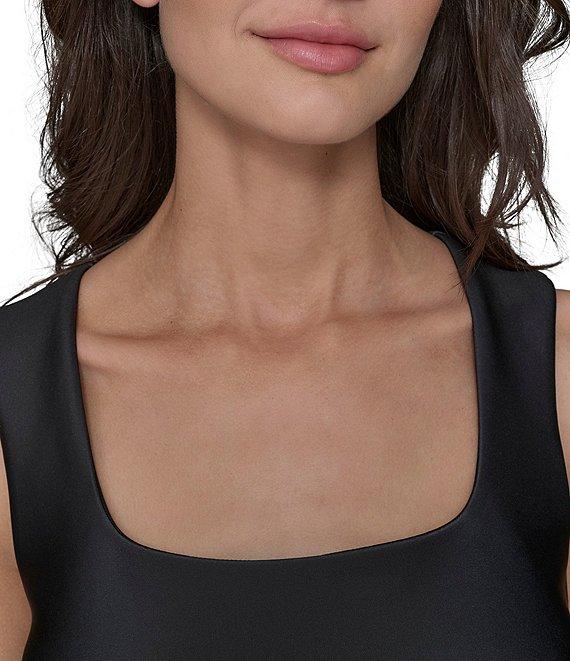 KARL LAGERFELD PARIS Scuba Tulip Print Square Neck Sleeveless Shift Midi Dress