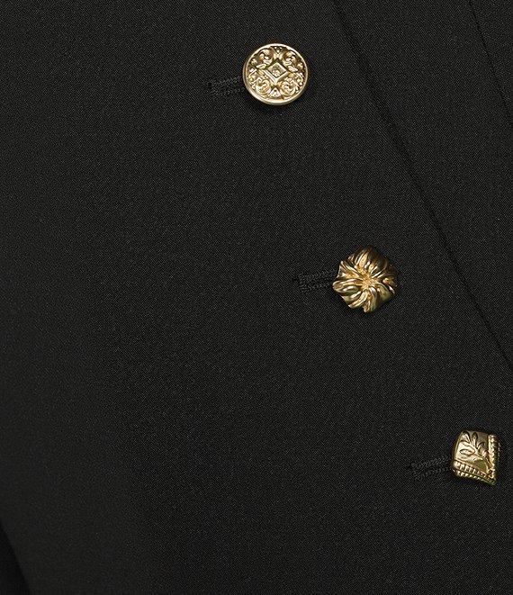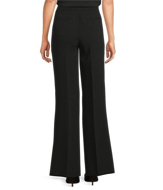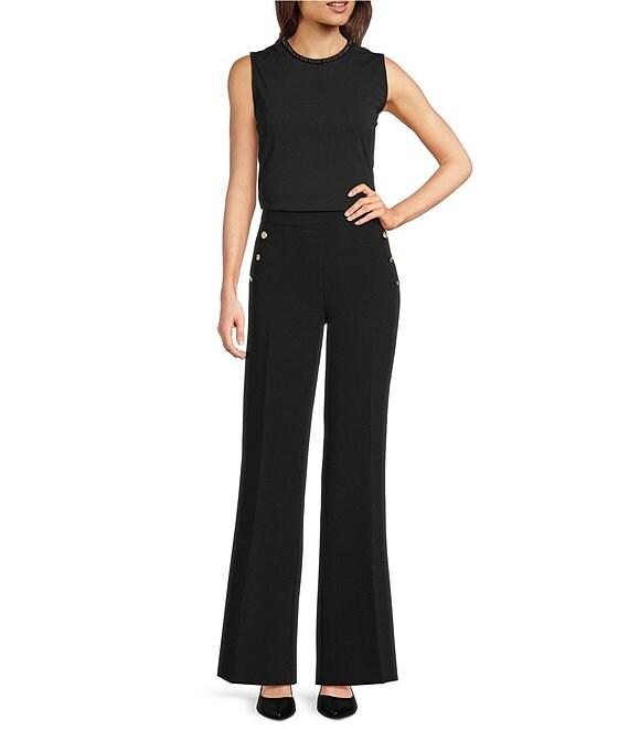From KARL LAGERFELD PARIS, these pants features Textured crepe fabrication Flat front silhouette Side button details Two functional front seam and two back pockets Full length Side zipper closure Approx. 33" inseam Polyester Hand wash Imported.