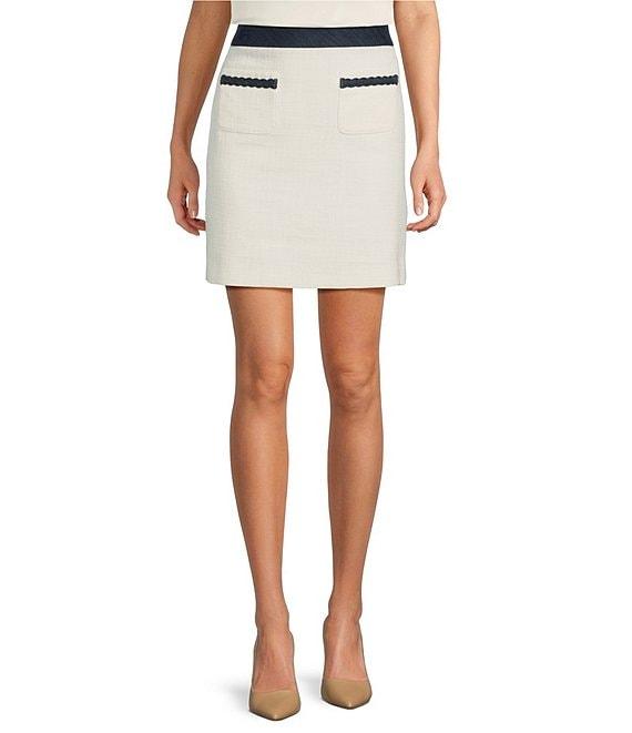From KARL LAGERFELD PARIS, this skirt features: Tweed fabrication A-line silhouette Front pockets Lined Straight hemline Invisible back zipper closure Approx. 19" length Cotton/polyester Dry clean only Imported.