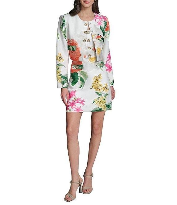 KARL LAGERFELD PARIS Tweed Floral Print Square Neck Sleeveless Sheath Mini Dress