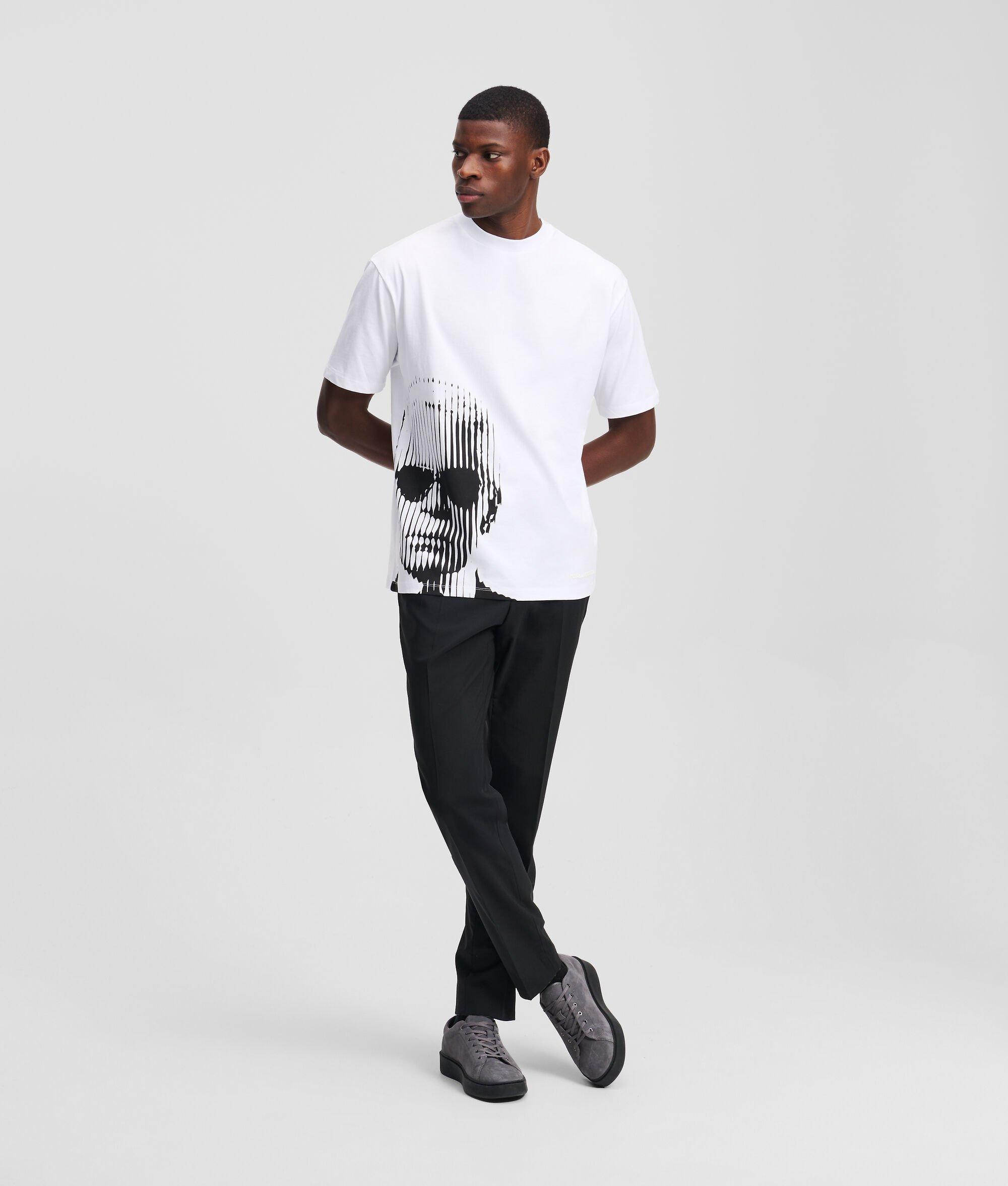 Step into effortless style with this oversized T-shirt showcasing a striking print of the legendary Karl Lagerfeld. A classic crewneck and short sleeves complete the casual-cool piece, perfect for laid-back days or elevating your streetwear game.