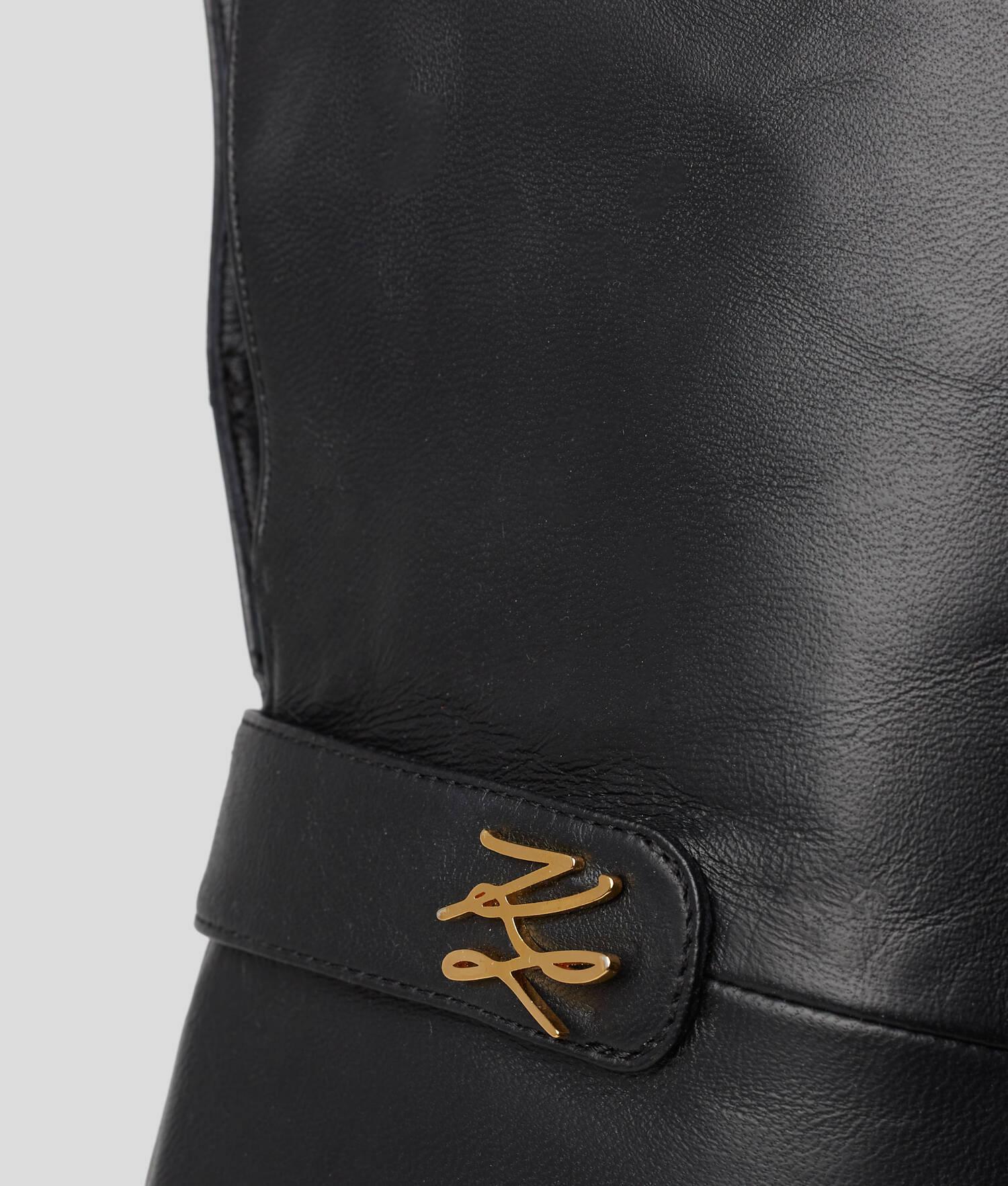 These over-the-knee boots are an empowering fashion statement. Beautifully crafted from premium leather, these boots feature a sharp pointed toe and a striking geometric metallic heel. Whether styled with sleek dresses or formal tailoring, these boots complete any look with strength and sophistication.
