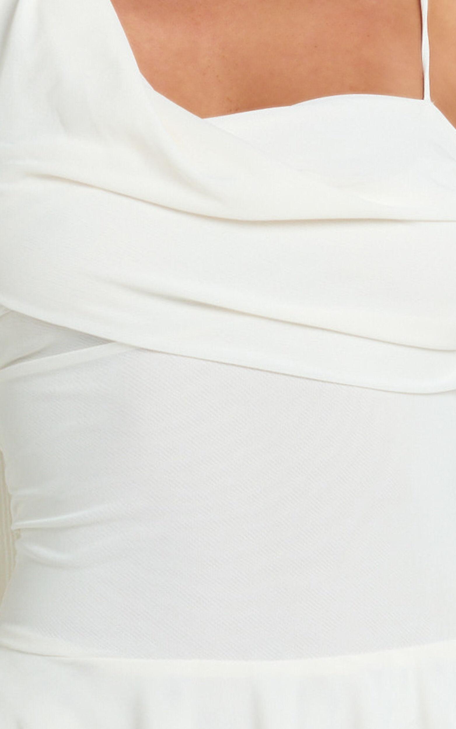 Karla Mini Dress - Asymmetric Tie Neck Fit And Flare Dress in Cream