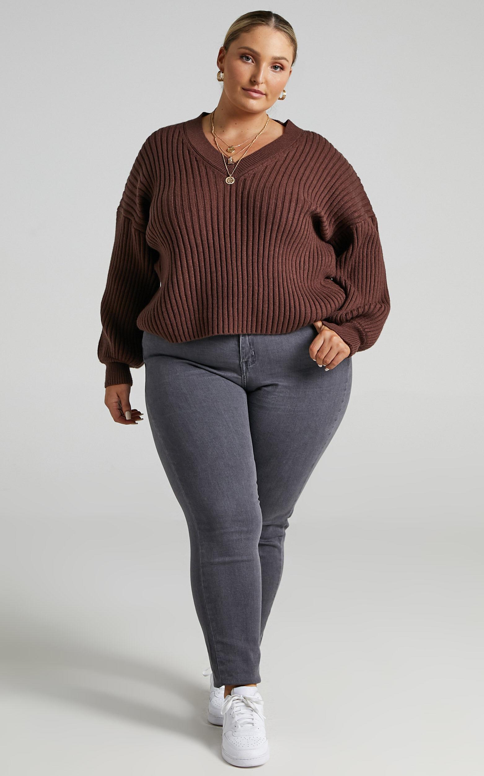 Let our Kartia V-neck Jumper keep you looking stylish and toasty this season! This semi-thick knit features a V-neckline, wide ribbed detail and long lantern sleeves. It is super versatile and will be your best friend during the colder months. Style it casually by half-tucking it into jeans and finishing it off with sneakers or keep it dressy with heels!Shop all Showpo. Product DetailsPull over styleDrop shouldersRelaxed fitRibbedNo liningSize & FitSize XS / 6 length: 63cm / 24.8inFirst model is wearing size XS / 6 AU / 2 US / 6 UK / 34 EUFirst model's height is 173cm / 5'8"Second model is wearing size XXXL / 18 AU / 14 US / 18 UK / 46 EUSecond model's height is 165cm / 5'5"Material & CareMade with 65% cotton, 35% polyester, high stretchCold hand wash only, cool iron, do not soak, do not tumble dry, wash separately